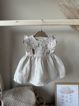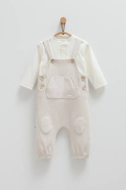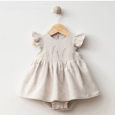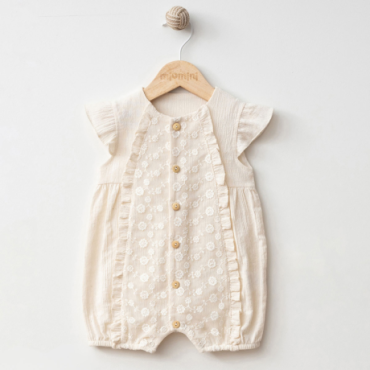 Ecru Embroidered front buttoned baby girl jumpsuit