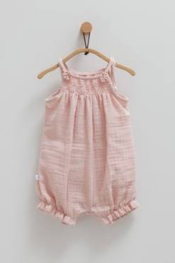 Baby Girl Muslin adjustable rope strap dusty rose shorts overalls