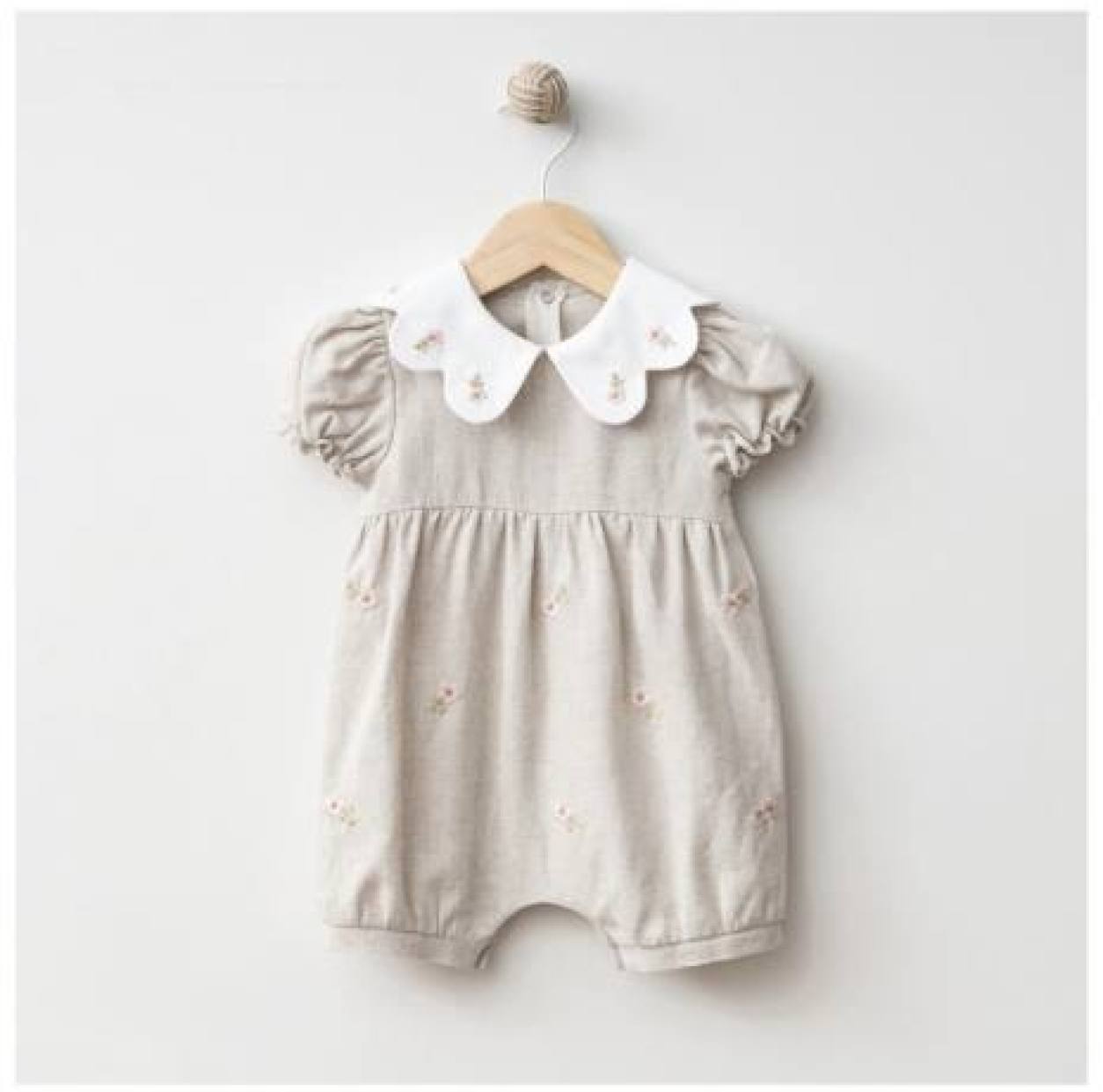 Ecru Embroidered front buttoned baby girl jumpsuit