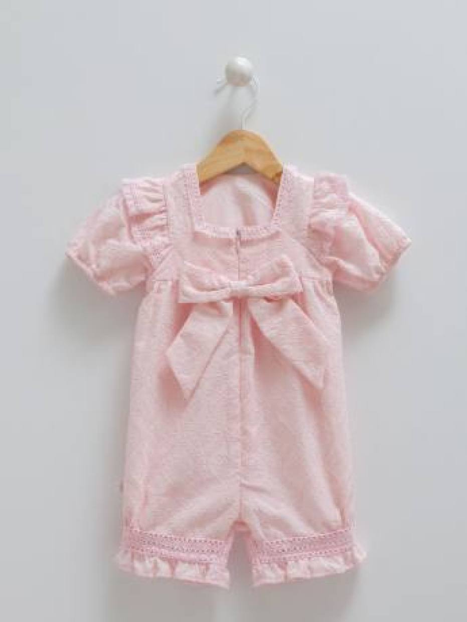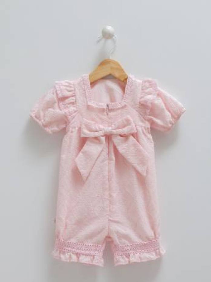 Bow detailed soft fabric guipure patterned baby girl jumpsuit