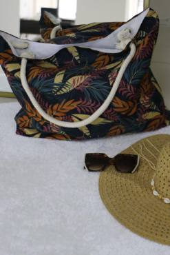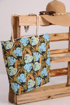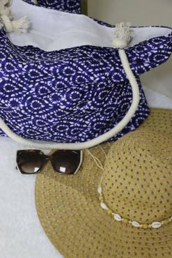 Large Beach Bag - Ethnic Pattern Navy Blue