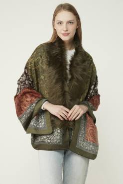 Shawl Patterned Green Poncho NW11188-3