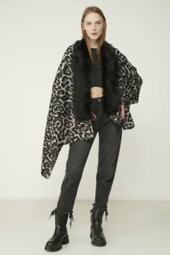 Leopard Patterned Gray Poncho NW10862-3