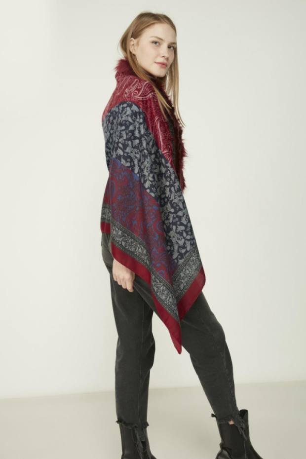 Patchwork Leopard Patterned Burgundy Poncho NW13955-3