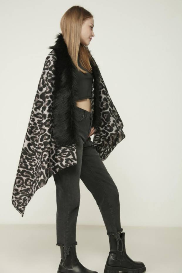 Patchwork Leopard Patterned Beige Poncho NW13955-3