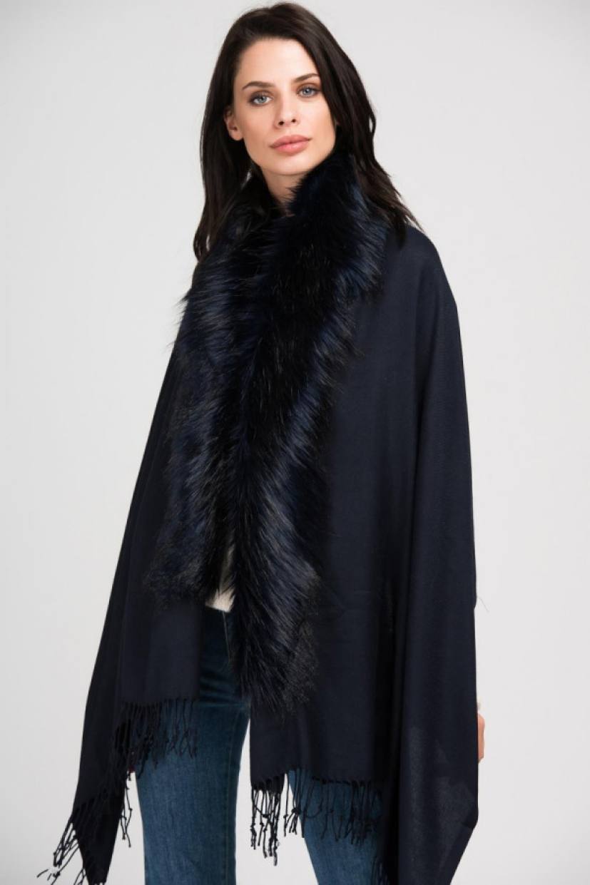 Navy Blue Fur Tassel Poncho NW11293