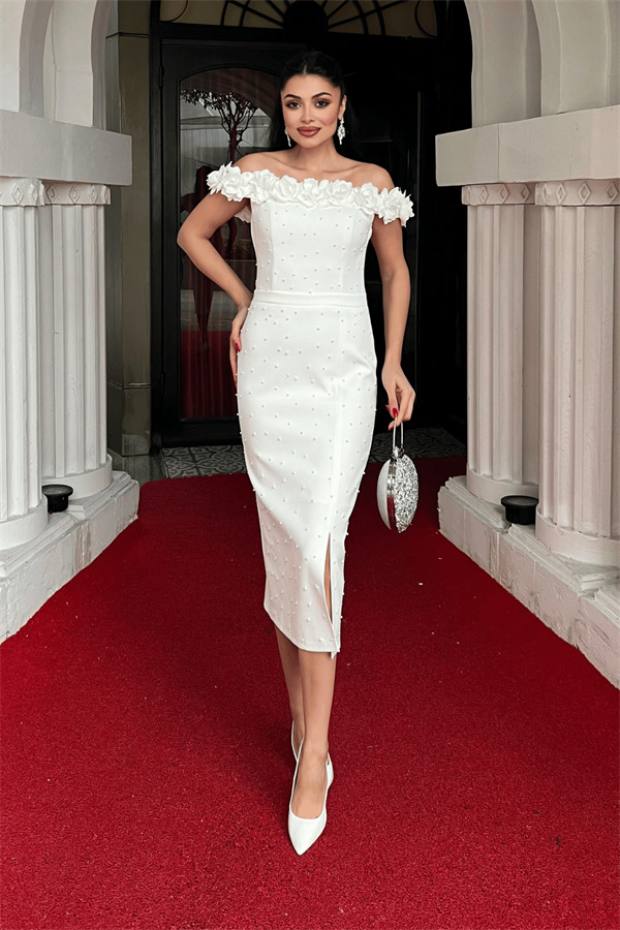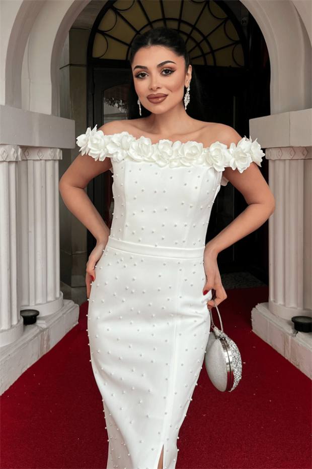 Gjatësia e Produktit: 100 cm nga gjoksi. (Mund të ndryshojë midis 1-3 cm.)Lloji i Pëlhurës: Pëlhurë AtlasProdukti ka një zinxhir në pjesën e pasme.Produkti përfshin një mbrojtëse gjoksi.